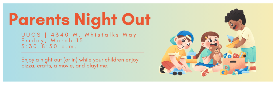 Please fill our this form to sign up for the upcoming Parents Night Out! Children are welcome to come as early as 5:30. Dinner will be served around 6:45, and we will show a G-rated movie. Please pick up your child no later than 8:30.